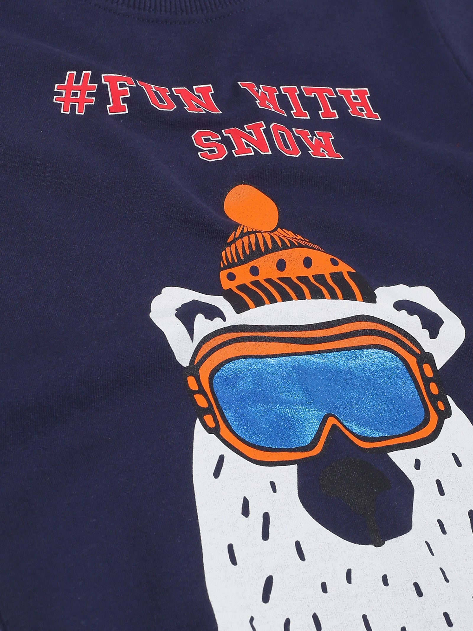 Boys Fun With Snow Print Round neck Pullover Sweatshirt- Navy