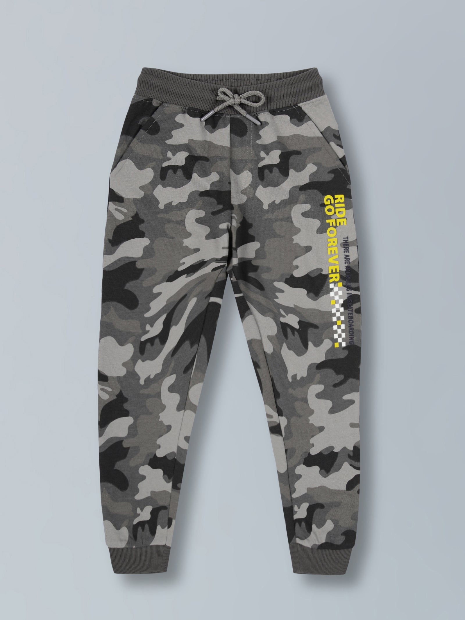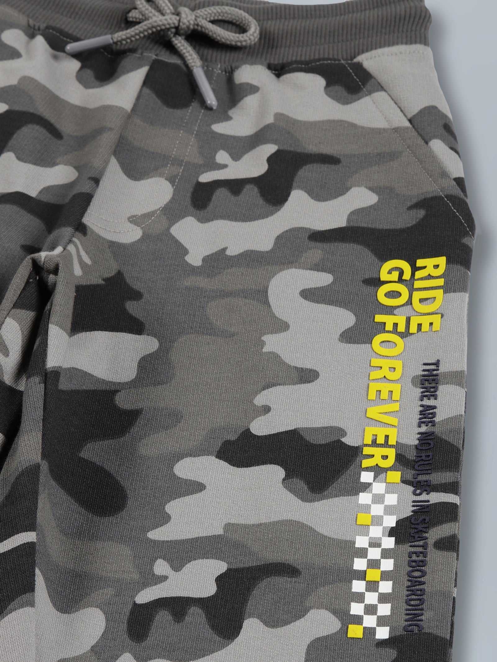 Boys Gery Camo AOP & Ride Forever Print sweatshirt fabric Cotton Jogger- Grey Melange