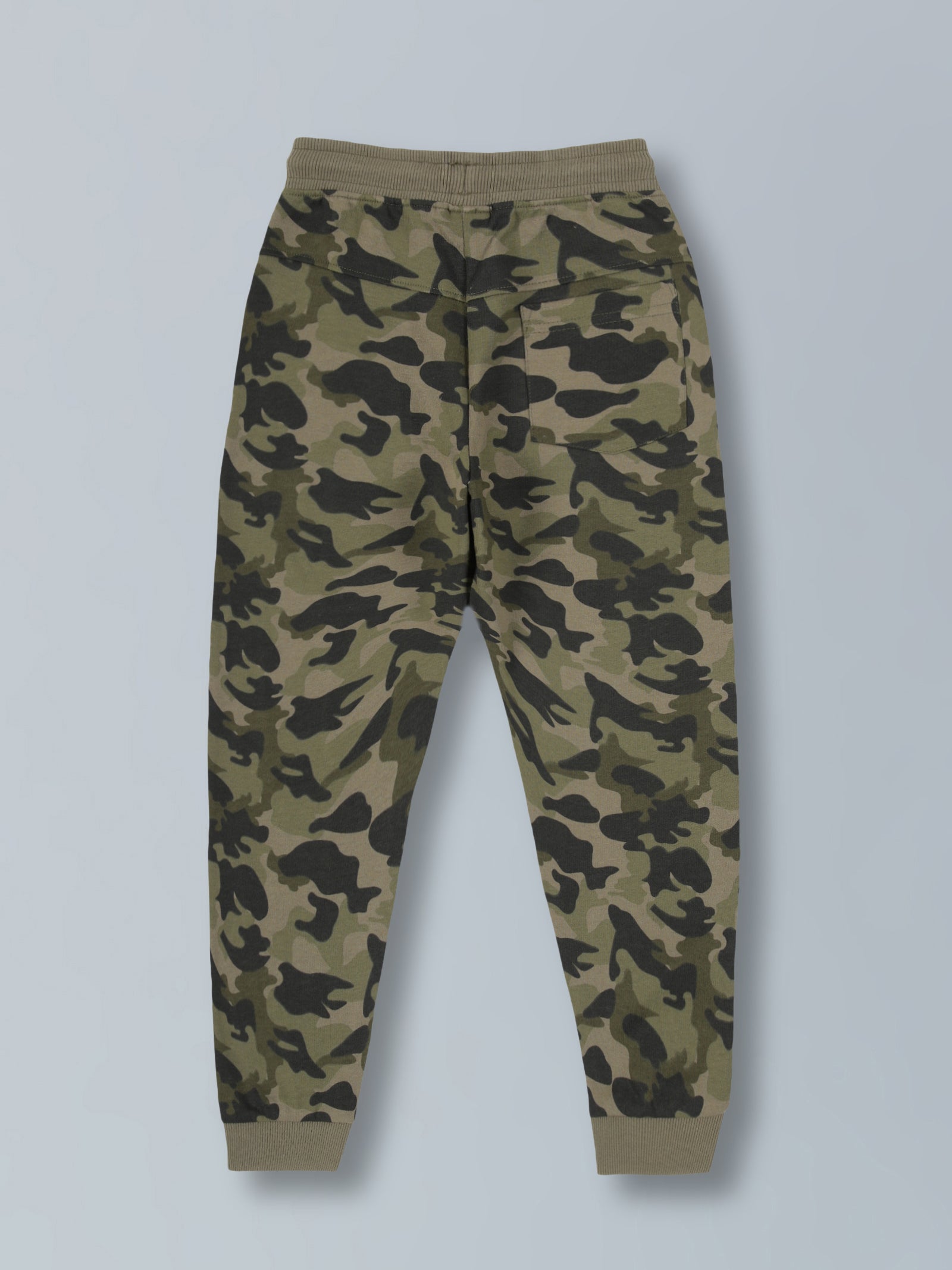 Boys Olive Camo AOP & Never Give Up Print Cotton Jogger- Olive