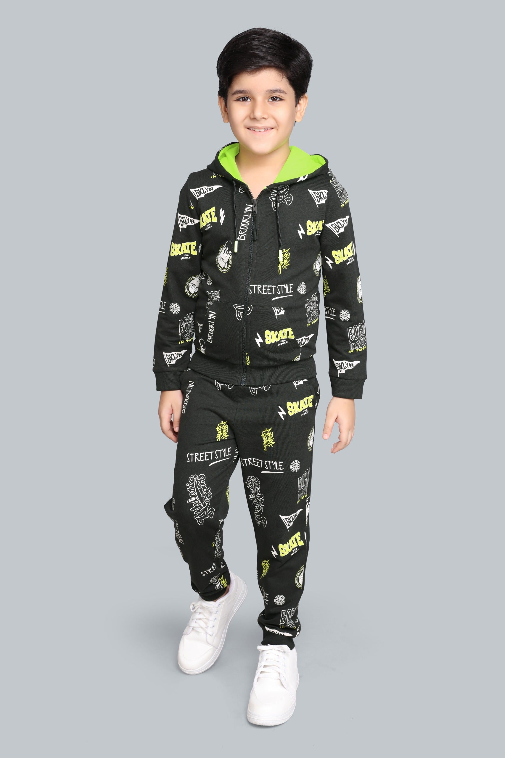 Boys Zip-Up Printed Hoodie Sweatshirt And Joggers Pants