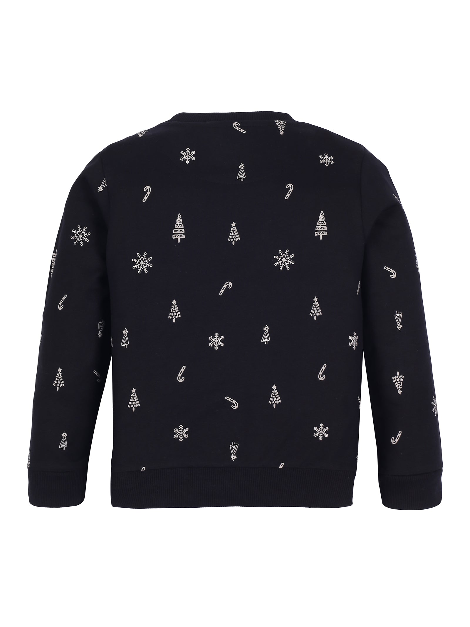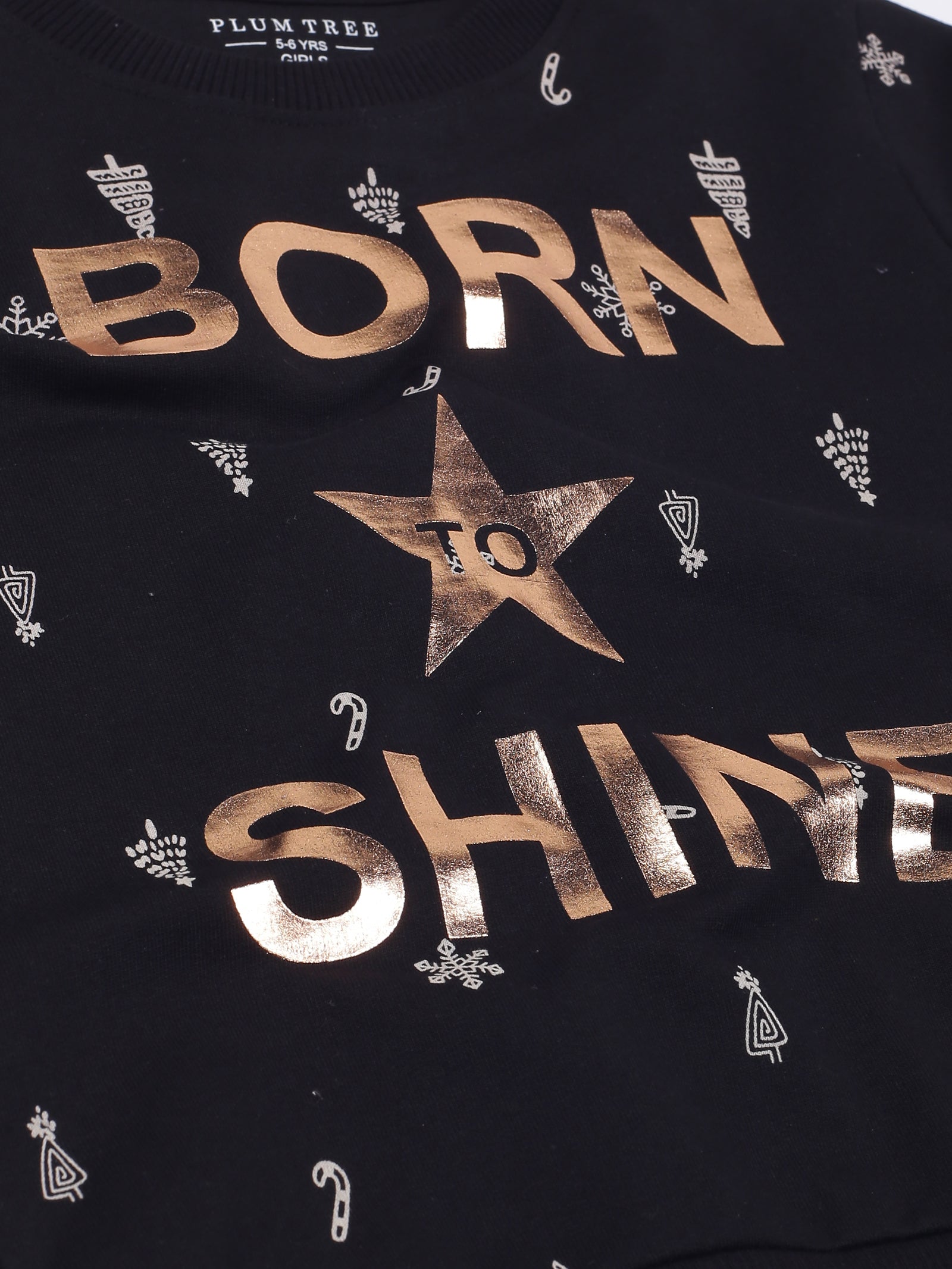Girls Shine print Round neck Pullover Sweatshirt- Black
