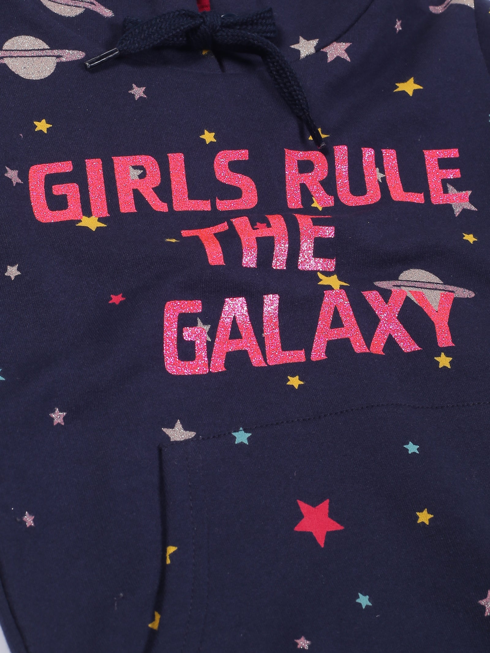 Girls Space Print Hoodie Sweatshirt- Navy