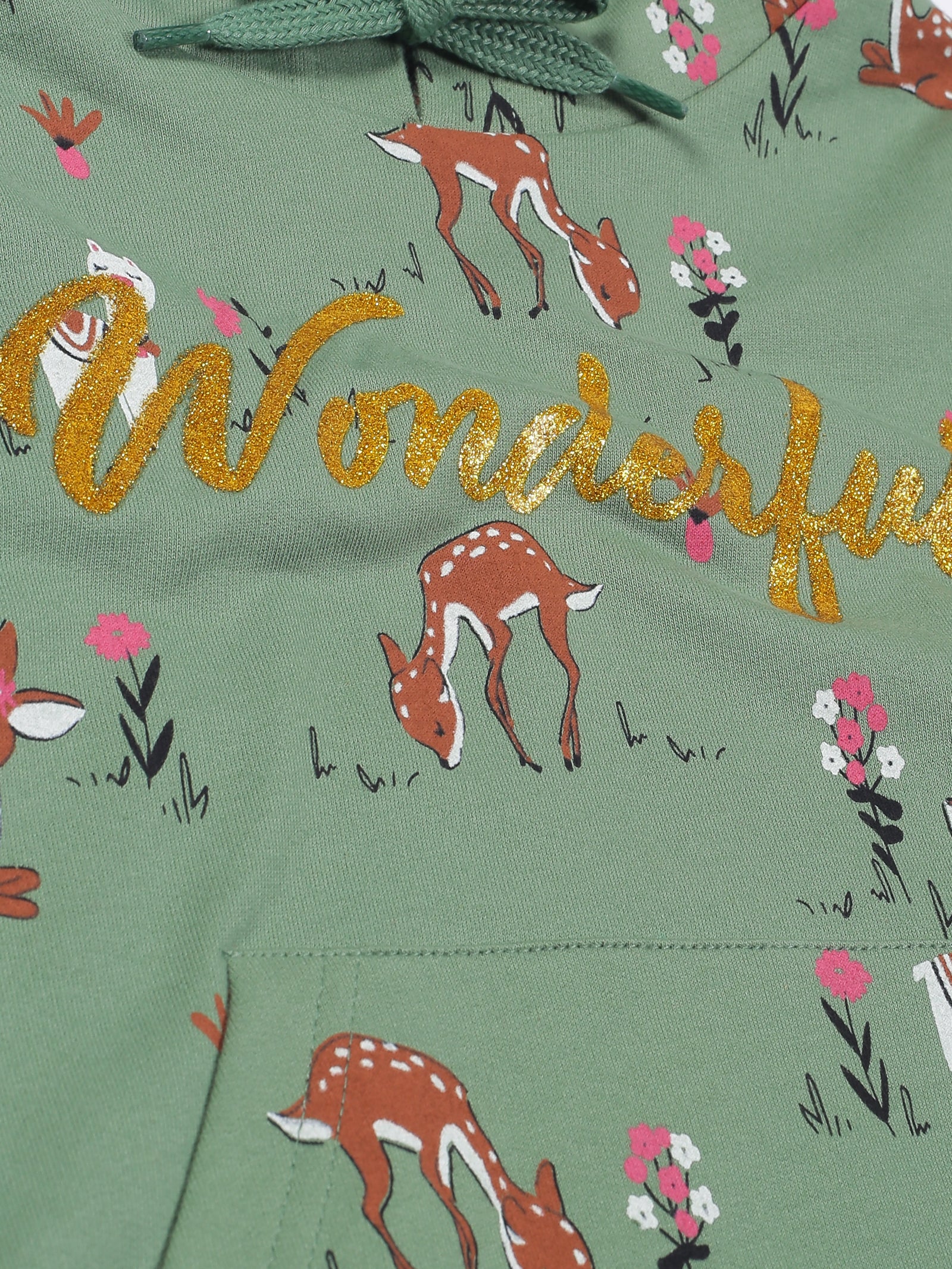 Girls Wonderful Print Hoodie Sweatshirt- Green