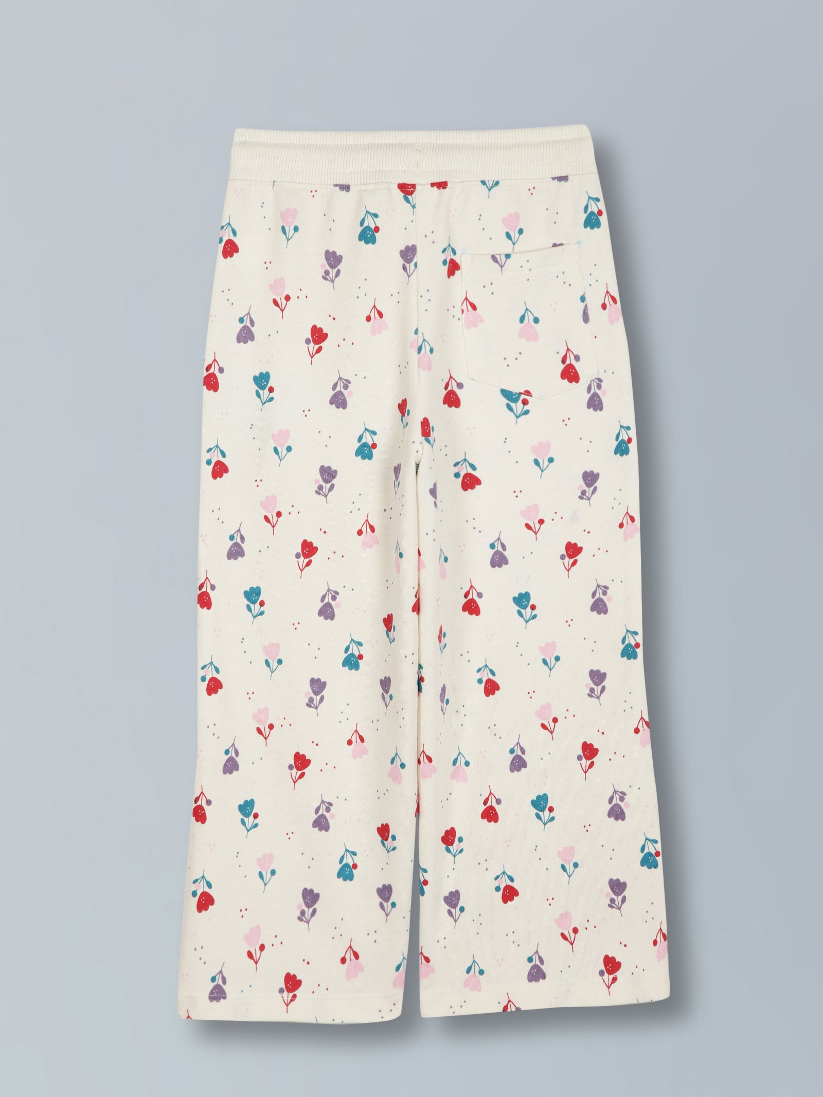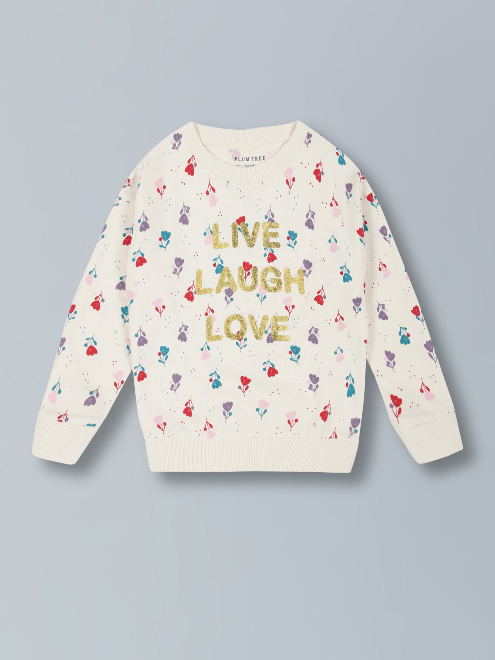 Glitter Printed Round Neck Pullover Sweatshirt and Printed Jogger set- Off White