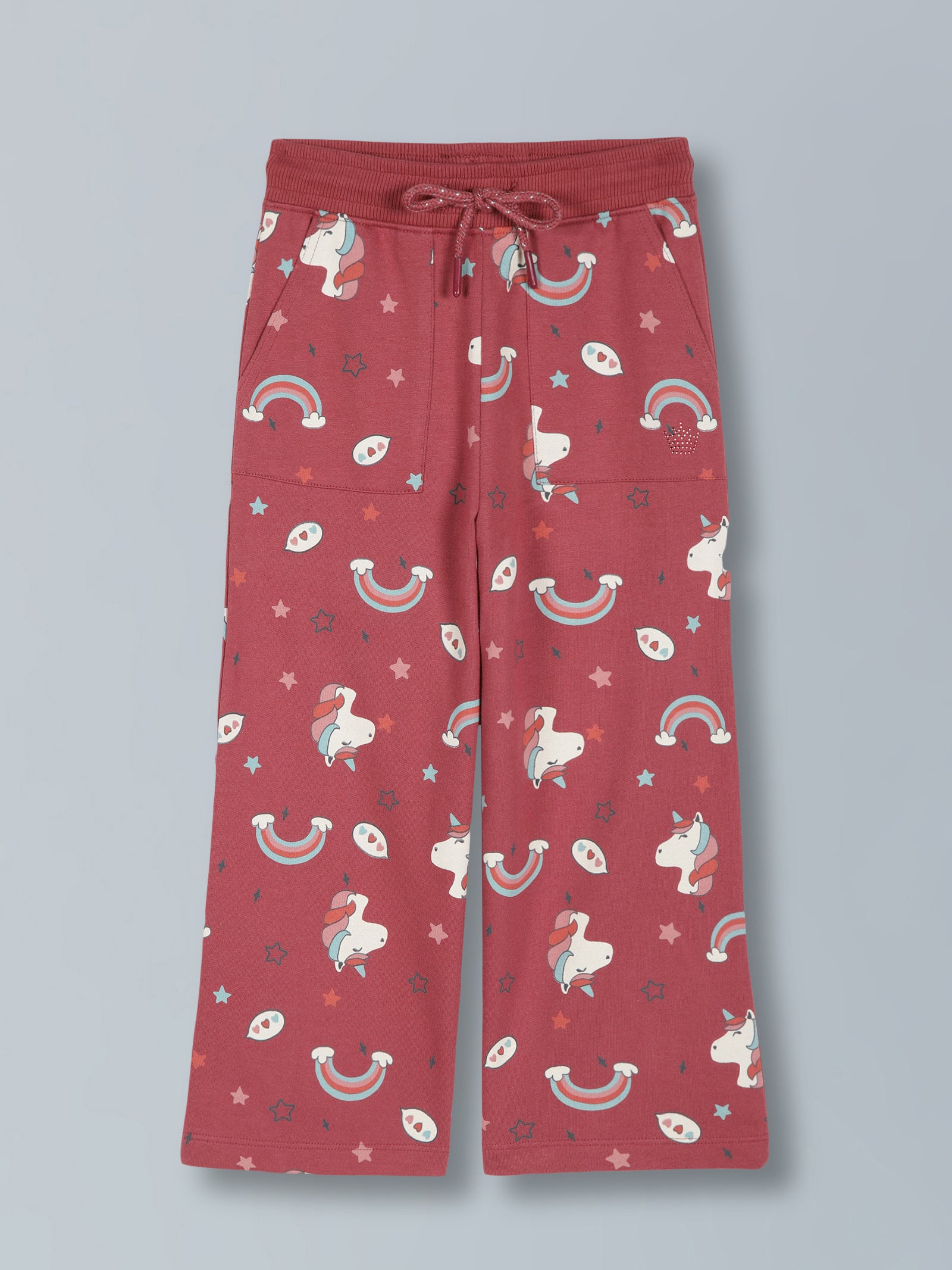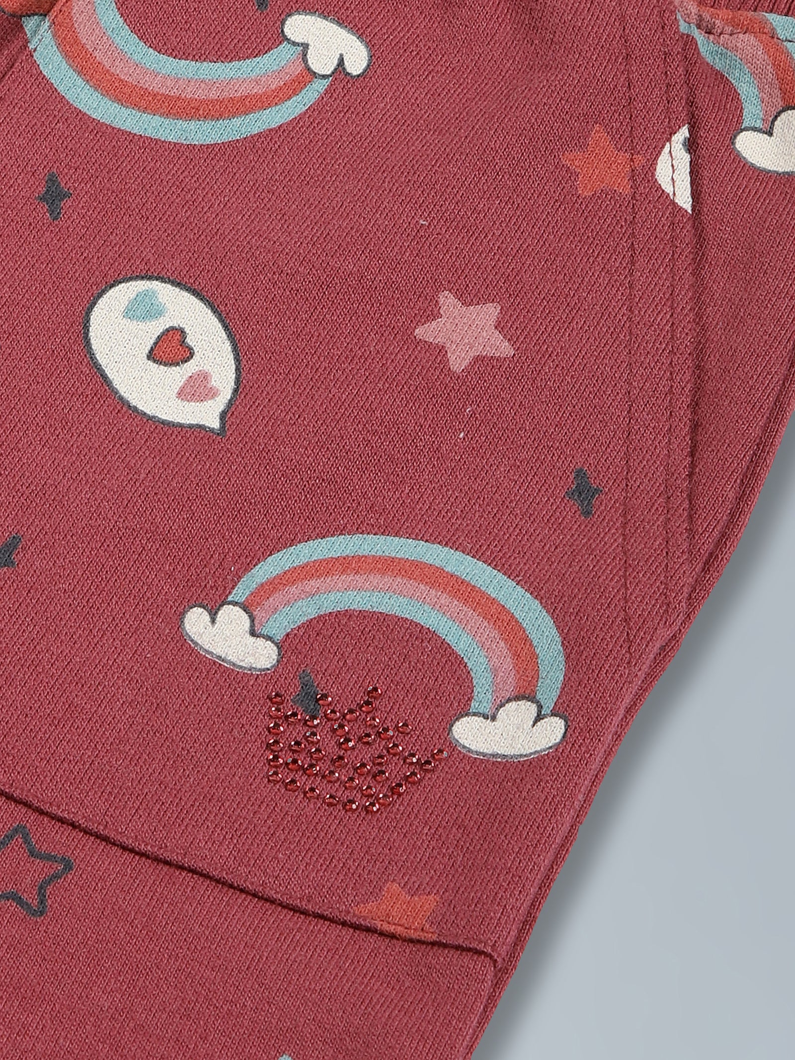 Hoodie Zip Up Sweatshirt and Printed wide leg pant set- Purple