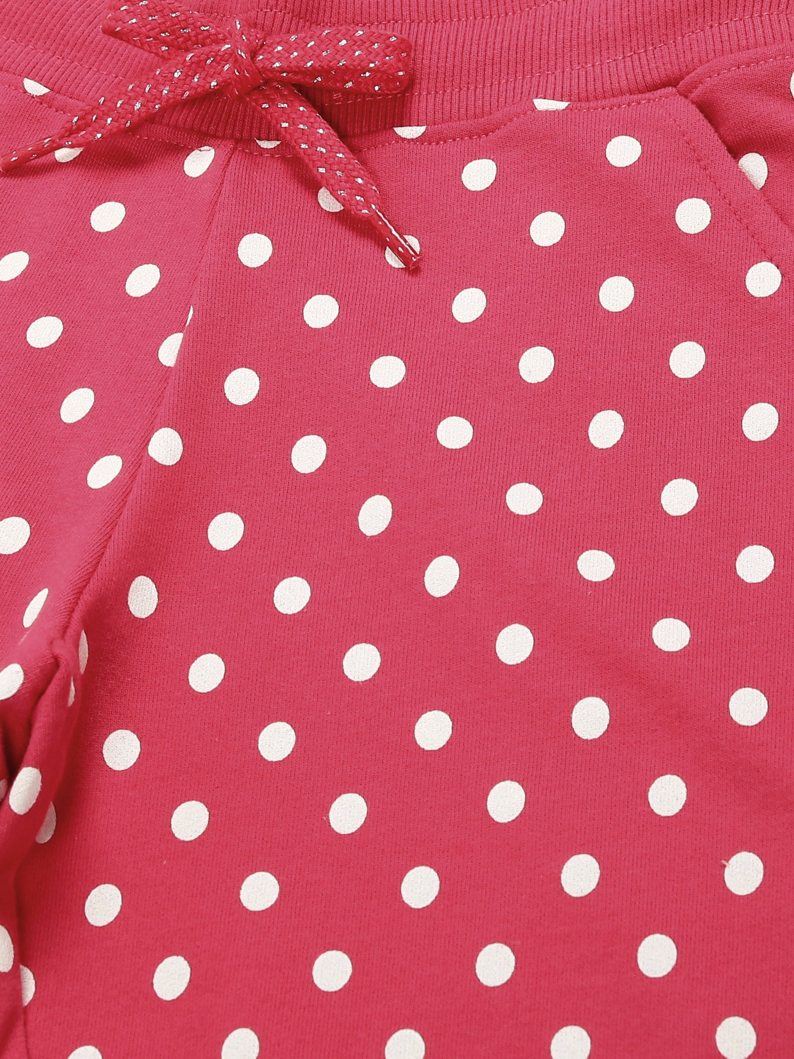 Polka Printed Hoodie Sweatshirt and Printed Jogger set- Red